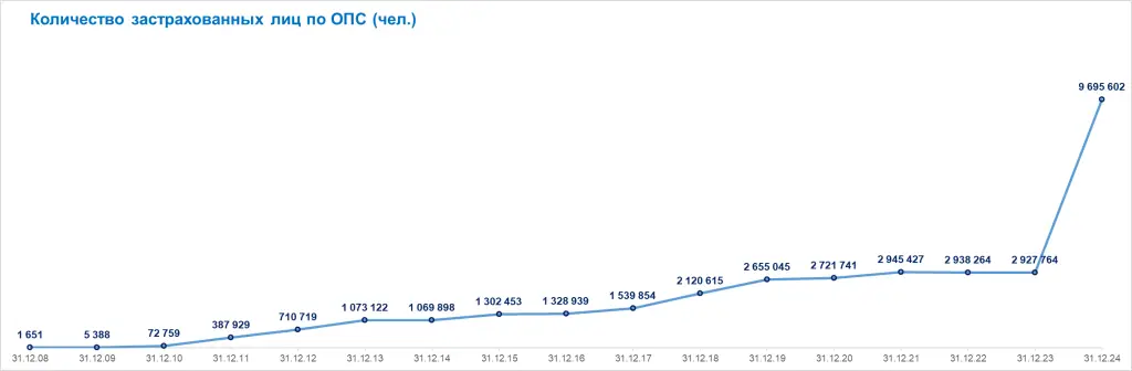 Количество застрахованных лиц по обязательному пенсионному страхованию: 9 695 602 человека