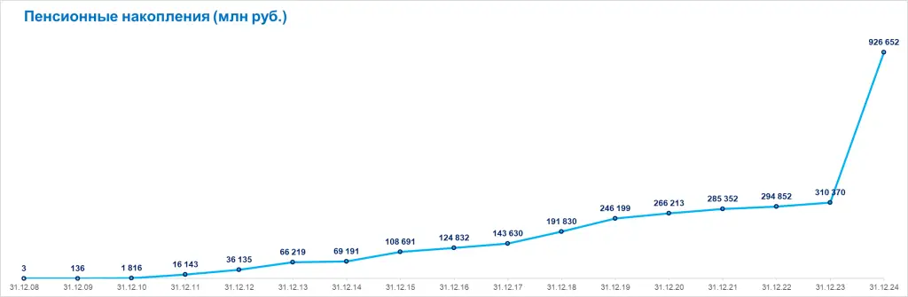 Накопленная доходность инвестирования средств пенсионных накоплений, распределённая на счета клиентов АО НПФ ВТБ Пенсионный фонд по обязательному пенсионному страхованию (ОПС) за 2009—2024 гг., составила 192,36%.Пенсионные накопления: 926,652 миллиарда рублей
